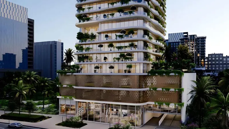 - 23-storey tower with cascading terraces and landscaped architecture