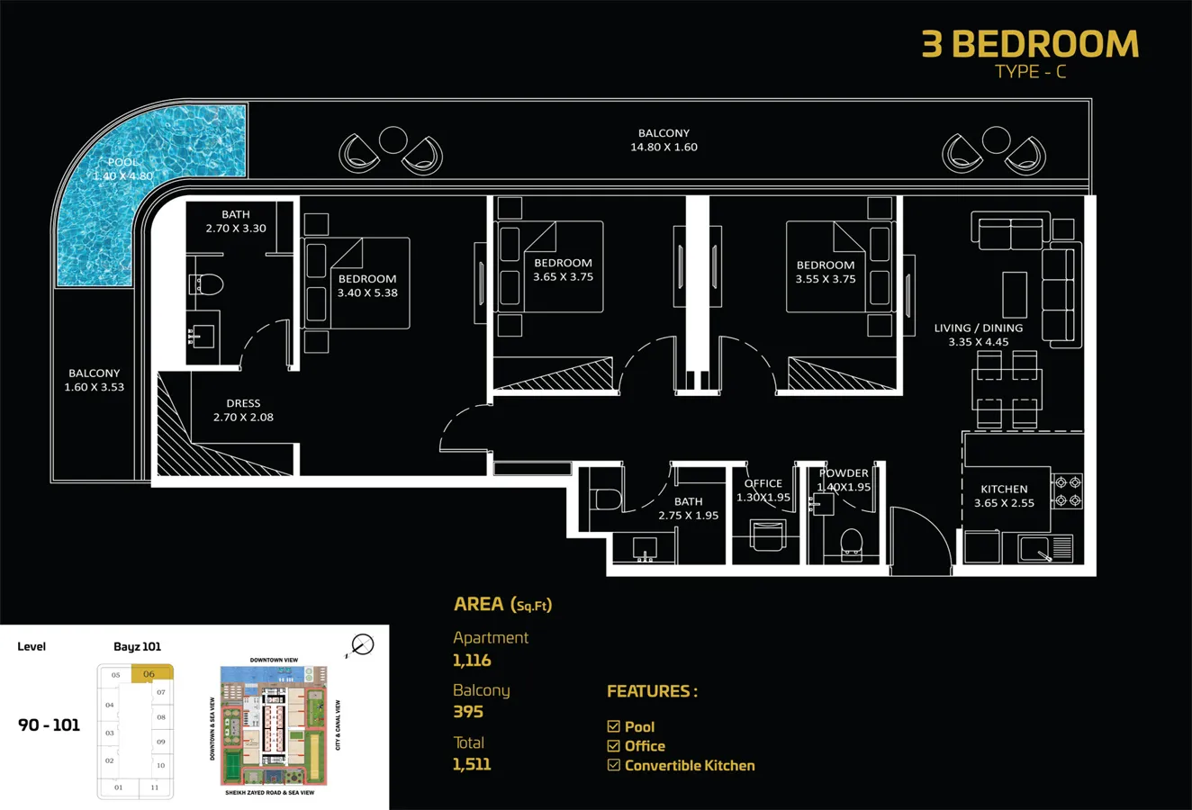 Step into BAYZ 101: a 101-floor icon in Business Bay with sweeping views of Burj Khalifa, Dubai Canal and the sea. Experience refined amenities, seamless metro access and an elevated urban lifestyle designed for modern living.