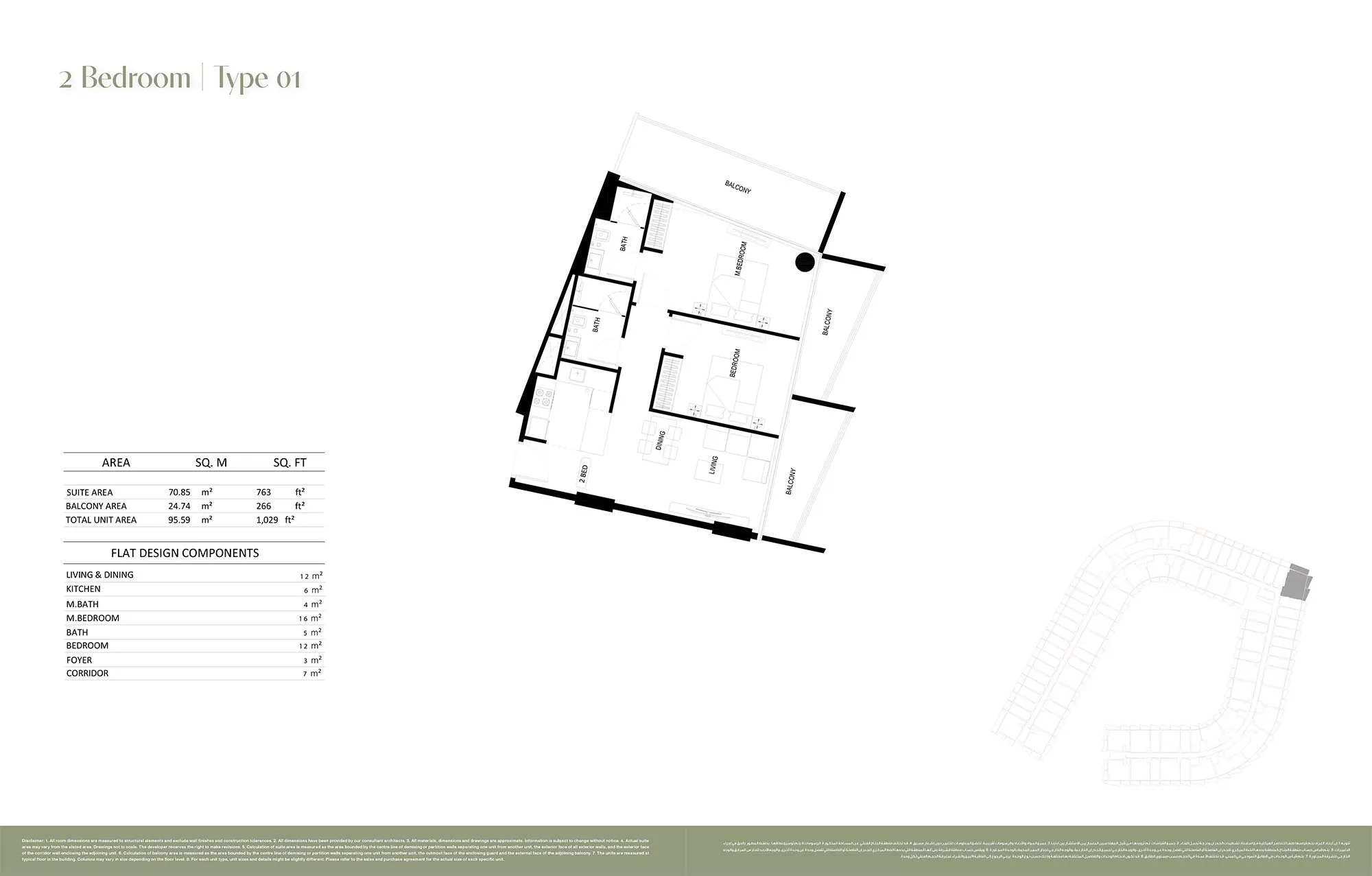 - Apartment types: Studio, 1-bedroom and 2-bedroom layouts