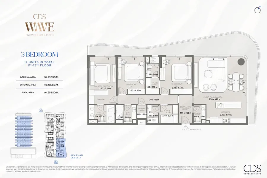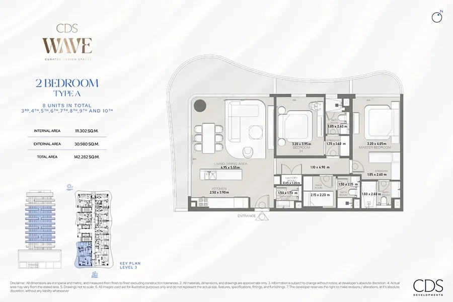 The project features a carefully planned mix of 1, 2, and 3-bedroom apartments, complemented by duplex residences with double-height ceilings that enhance space, light, and openness. As a boutique residential tower, CDS Wave focuses on privacy and quality living through limited, curated amenities tailored for everyday comfort and relaxation. The residences are designed to suit professionals, families, and global buyers seeking a sophisticated home within the evolving Dubai Islands destination.