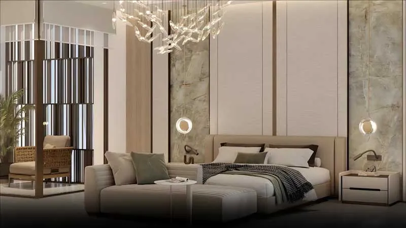 - Interior Features: Light colours, natural textures, stone finishes, soft ambient lighting
