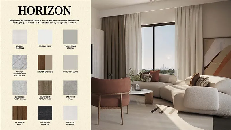 Interiors across all residences feature fully fitted kitchens, premium finishes, large glazing for natural light, and refined joinery using natural materials. Flexible interior themes allow residents to personalize their homes, while layouts are carefully planned to ensure uninterrupted views, ventilation, and a seamless indoor-outdoor living experience.