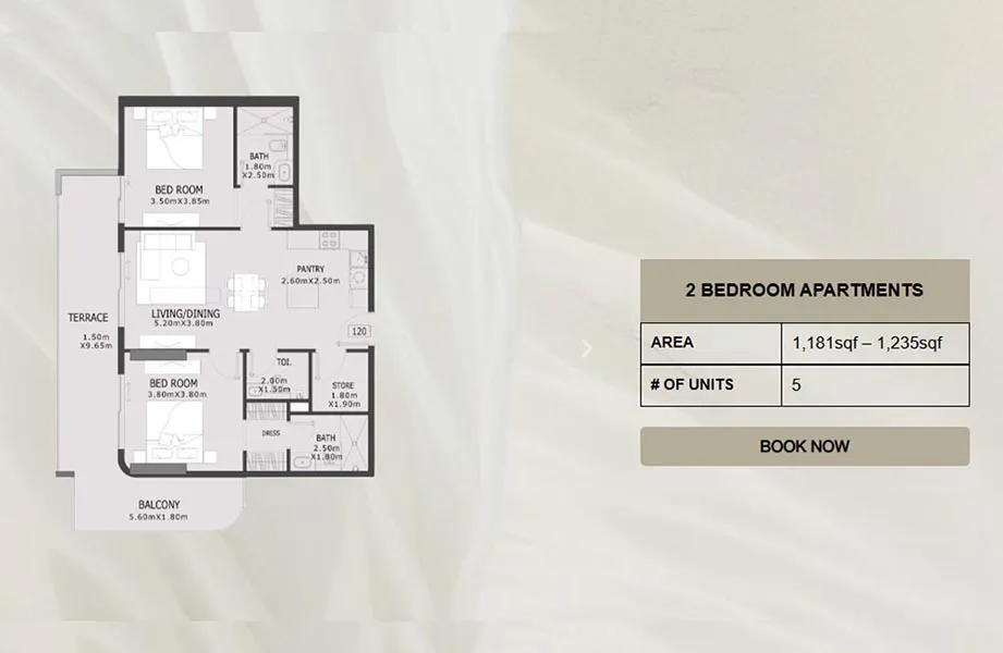 - 2-Bedroom Apartments: 5 units, sizes 1,181 – 1,235 sq. ft.
