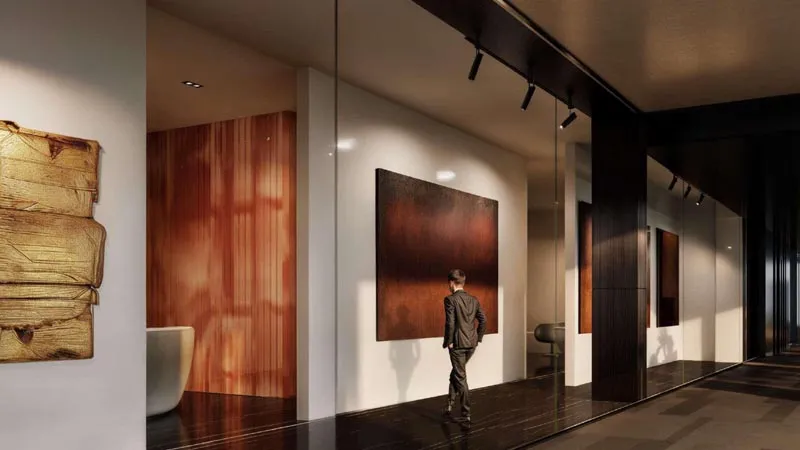 - Art displays in lobby, corridors, fitness areas, and dining zones