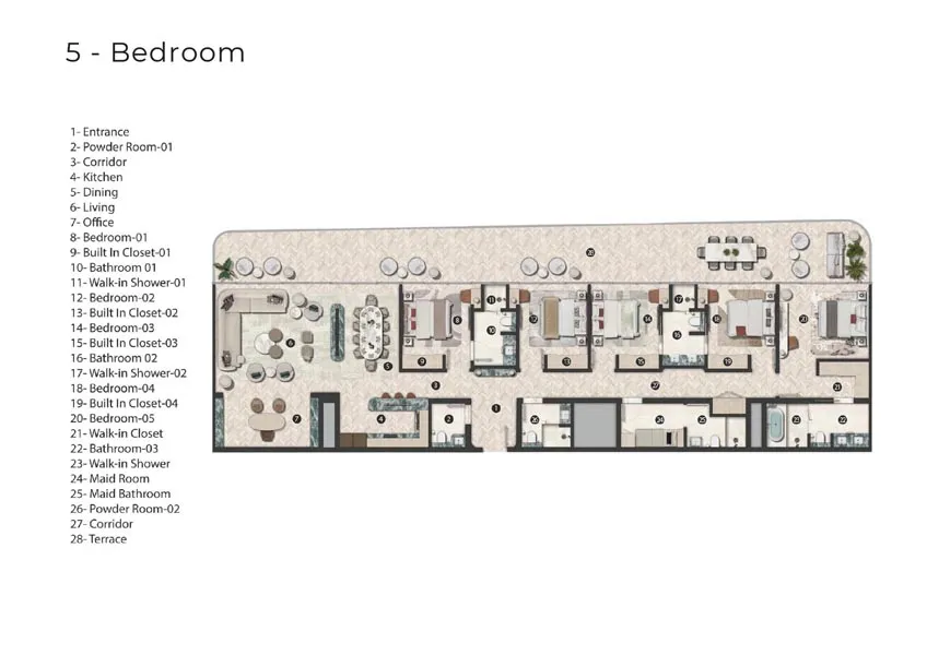 The mid-rise residential tower spans 10 floors and introduces a thoughtfully balanced mix of apartments, townhouses, and penthouses. Residences range from 1 to 5 bedrooms, catering to professionals, families, and high-end end users alike. The unit distribution reflects market demand, with 68 one-bedroom and 70 two-bedroom homes, complemented by 30 three-bedroom townhouses and a limited collection of larger four-bedroom apartments and five-bedroom penthouses, totaling only three ultra-premium units.