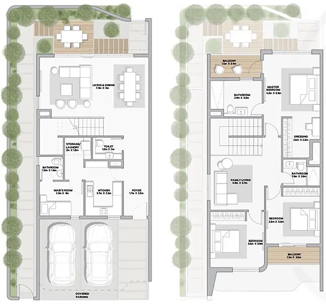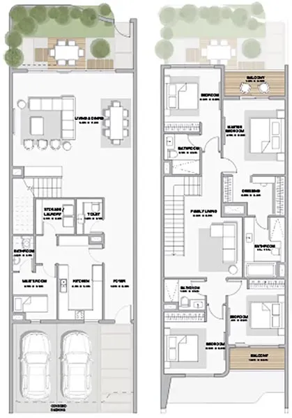 The villas and townhouses feature elegant layouts, spacious interiors, and eco-efficient technologies that embody architectural precision and sustainability. Open-plan living areas, shaded terraces, and lush boulevards invite comfort and serenity, while premium finishes, water features, and smart home systems elevate every lifestyle detail. Surrounded by a vibrant oasis of cafés, parks, and cultural spaces, every residence is a showcase of functional beauty and modern design.