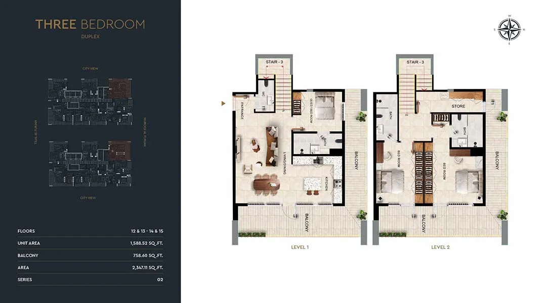 - Unit options include 1, 2 & 3-bedroom apartments, plus 3-bedroom penthouse and duplex homes
