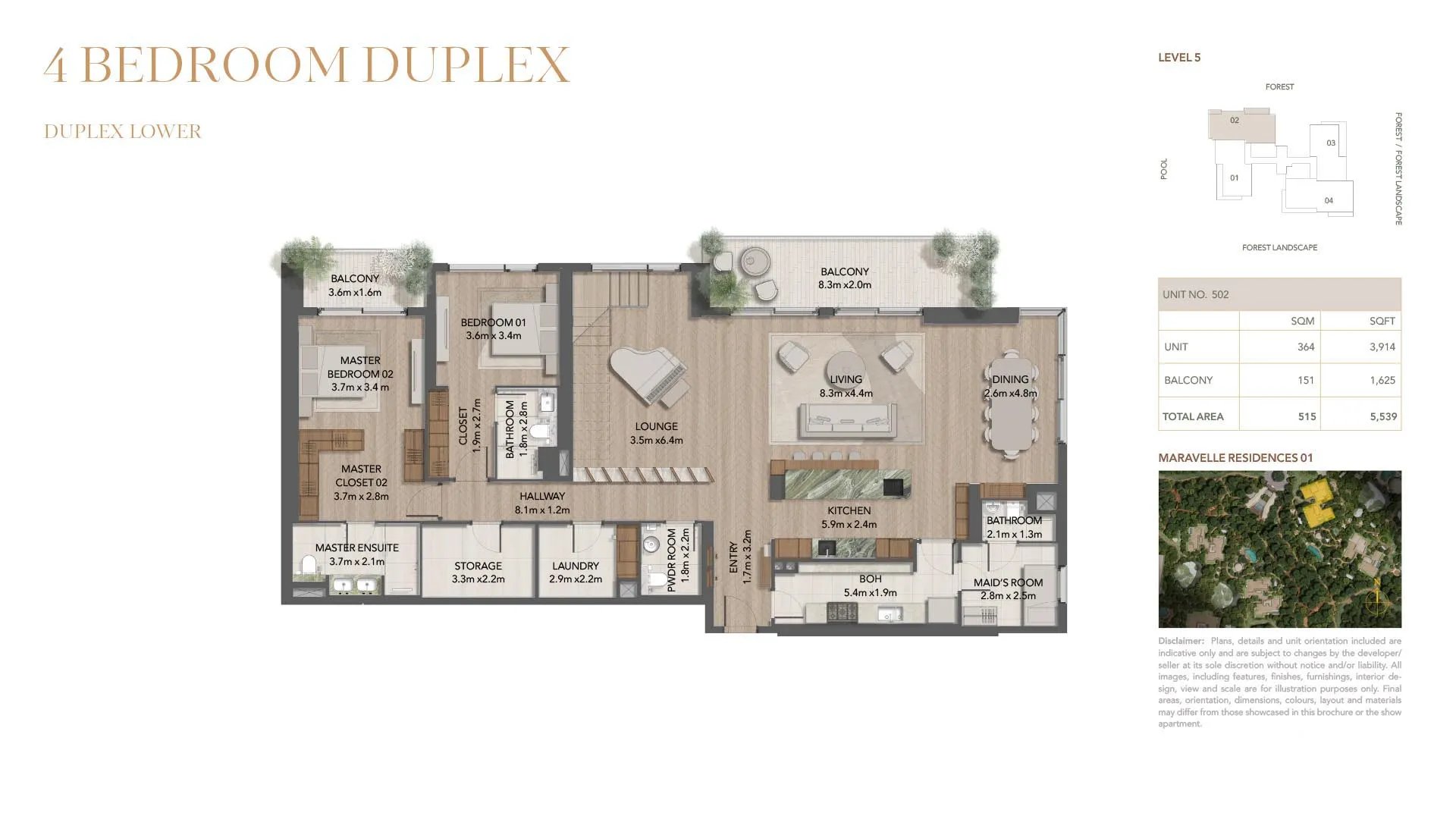 - Design Features: 3m ceilings, hardwood & marble finishes, and forest views
