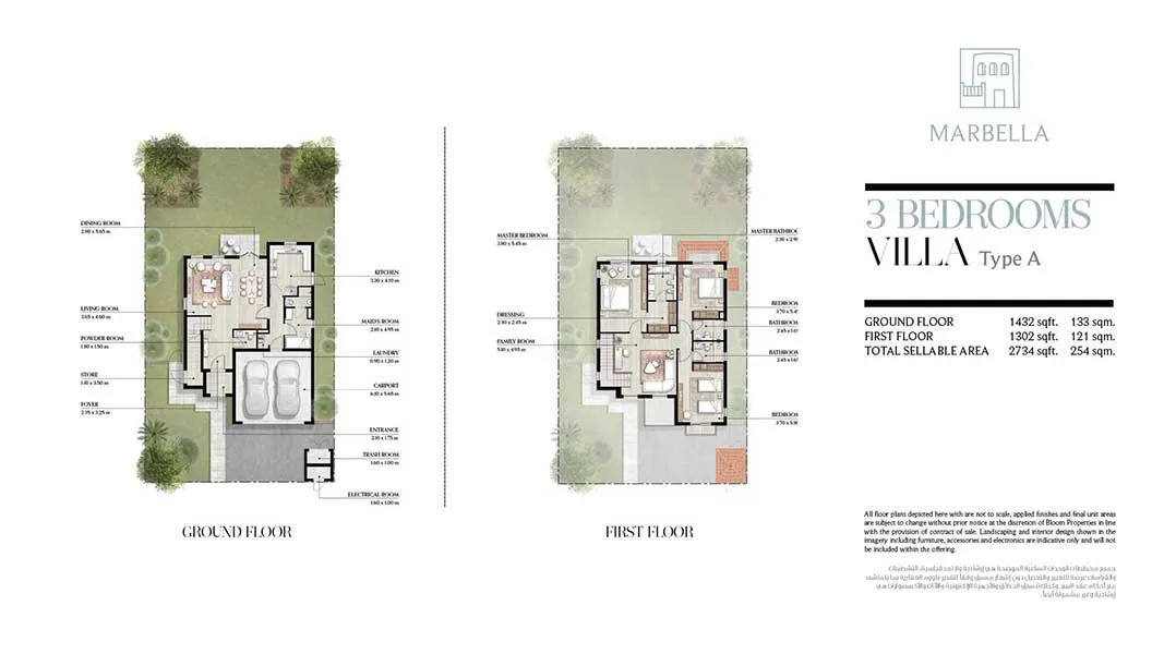 - 3-Bedroom Villa: 2,734 sq. ft. / 254 sqm