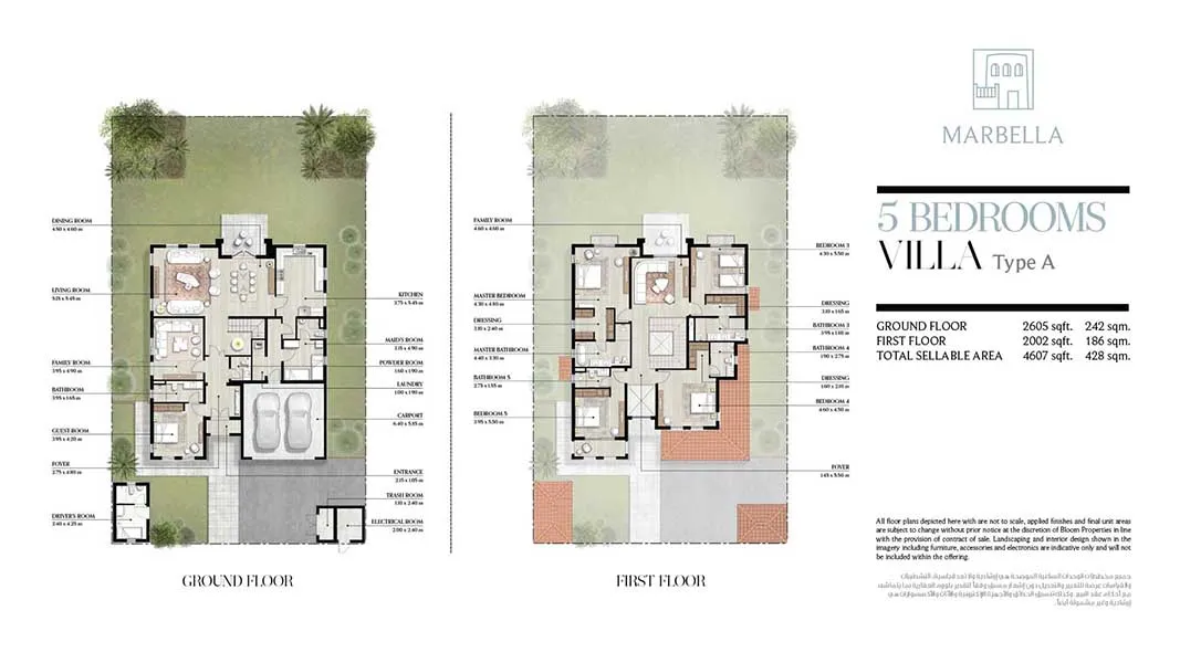 - 5-Bedroom Villa: 4,607 sq. ft. / 428 sqm