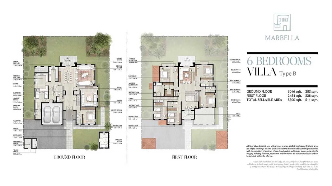 - 6-Bedroom Villa: 5,500 sq. ft. / 511 sqm