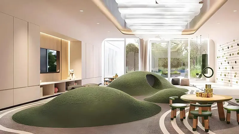 - Co-working spaces, private cinema room and children’s indoor play area