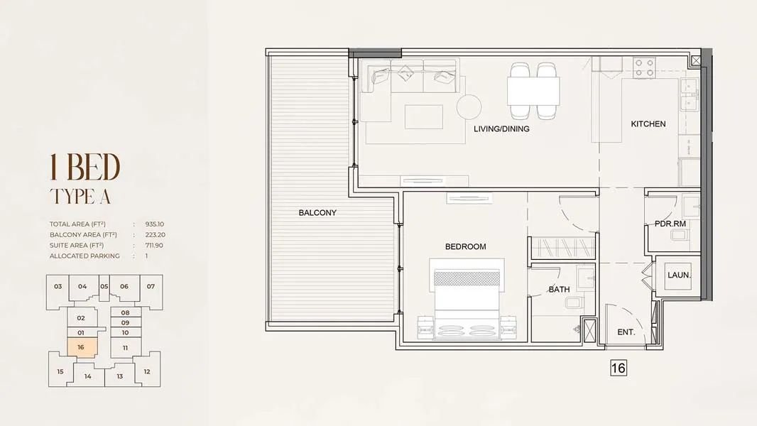- 1-Bedroom: 935 – 952 sq. ft.