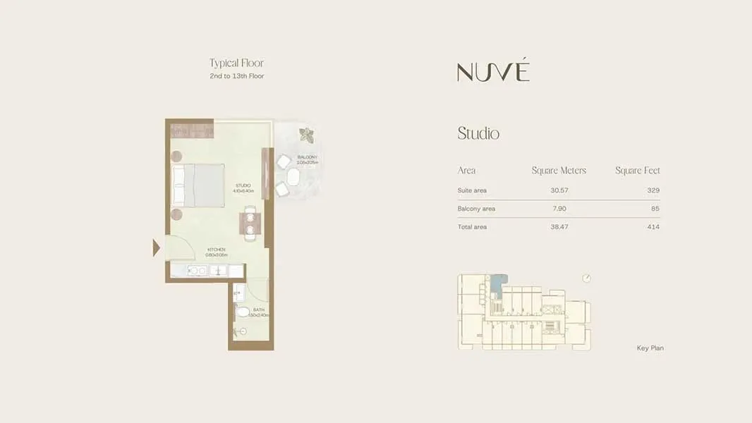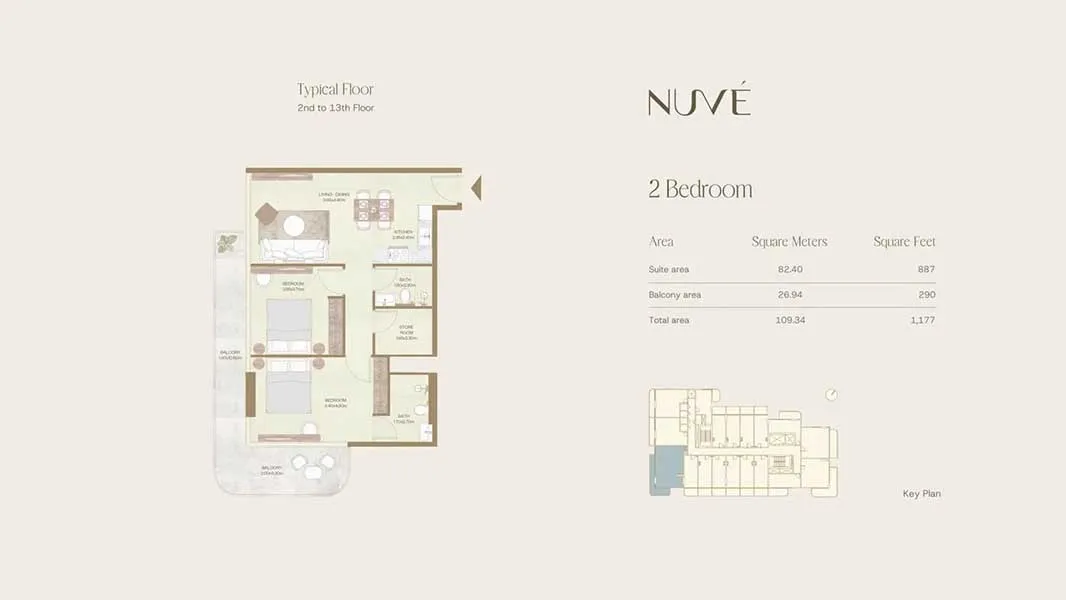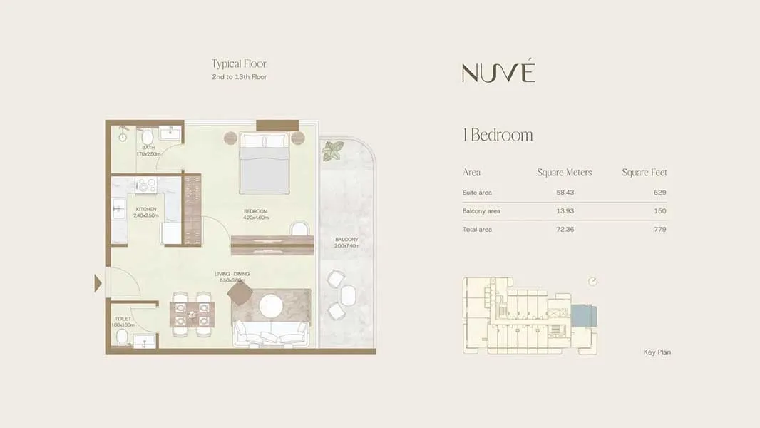 Nuve by Zoya is a thoughtfully designed residential address introduced by Zoya Developments, strategically positioned within the fast-emerging Dubai Land Residence Complex (DLRC). Inspired by the philosophy of fluid motion, the tower features graceful façade curves, balanced colour palettes, and contemporary architectural geometry. The development comprises a basement, ground level, two podium floors, 13 residential storeys, and a landscaped rooftop, offering a modern urban lifestyle supported by strong investment potential.