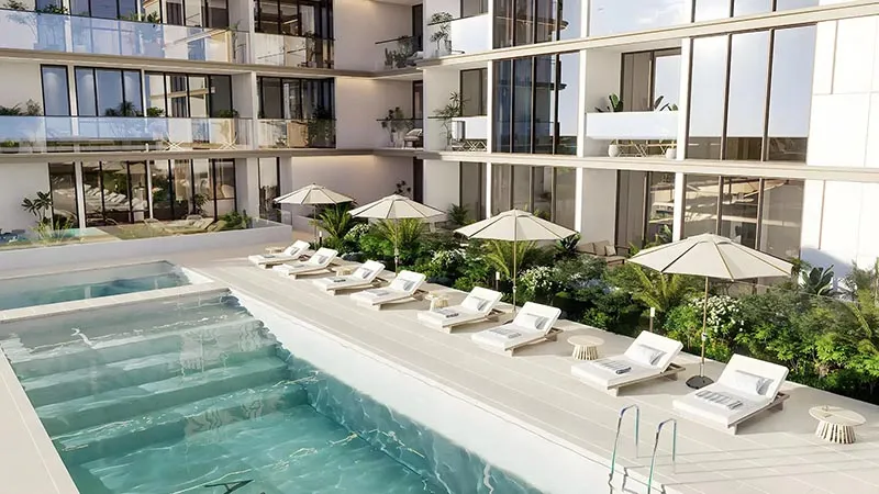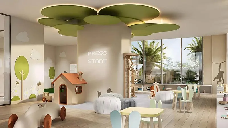 - Amenities: Outdoor swimming pool with sun loungers, landscaped areas, modern gym, co-working spaces, multifunctional hall for events, covered children’s playroom, and rooftop green lounges.