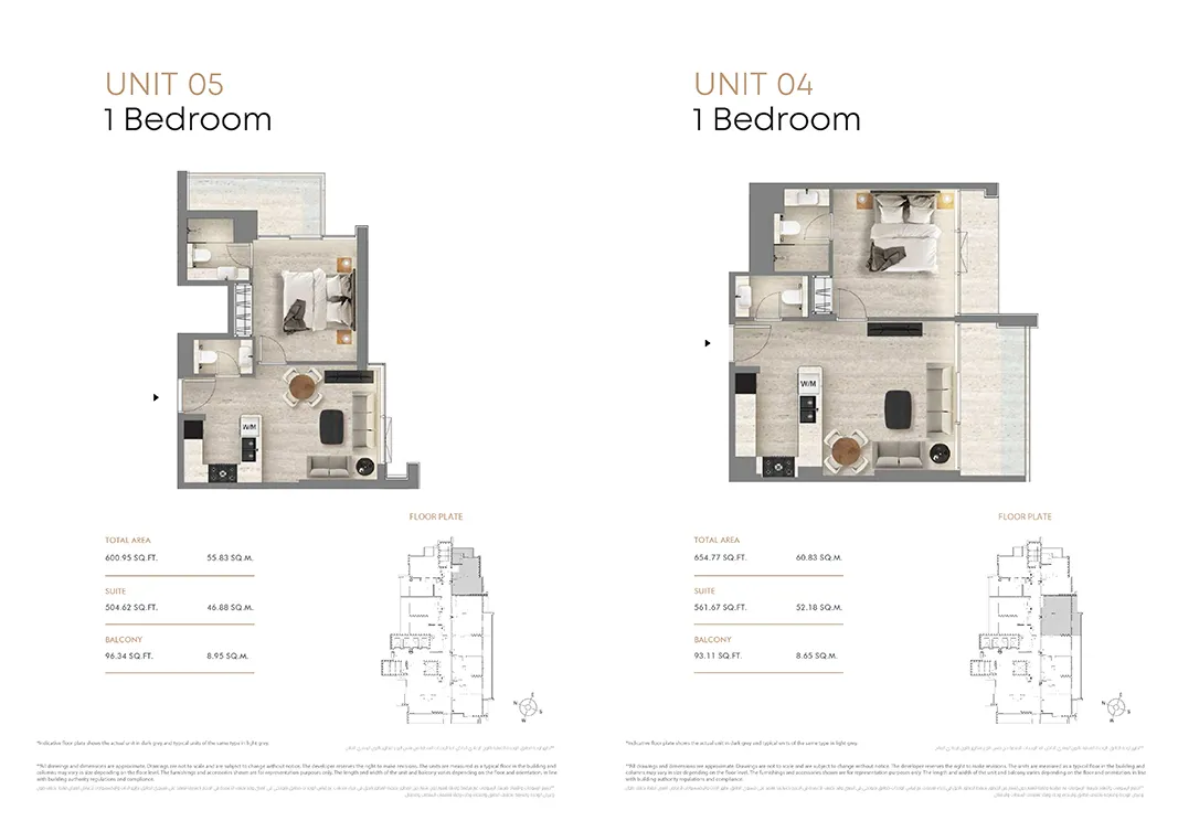 - Bedrooms: Built-in wardrobes, private terraces, en-suite in 1BR units