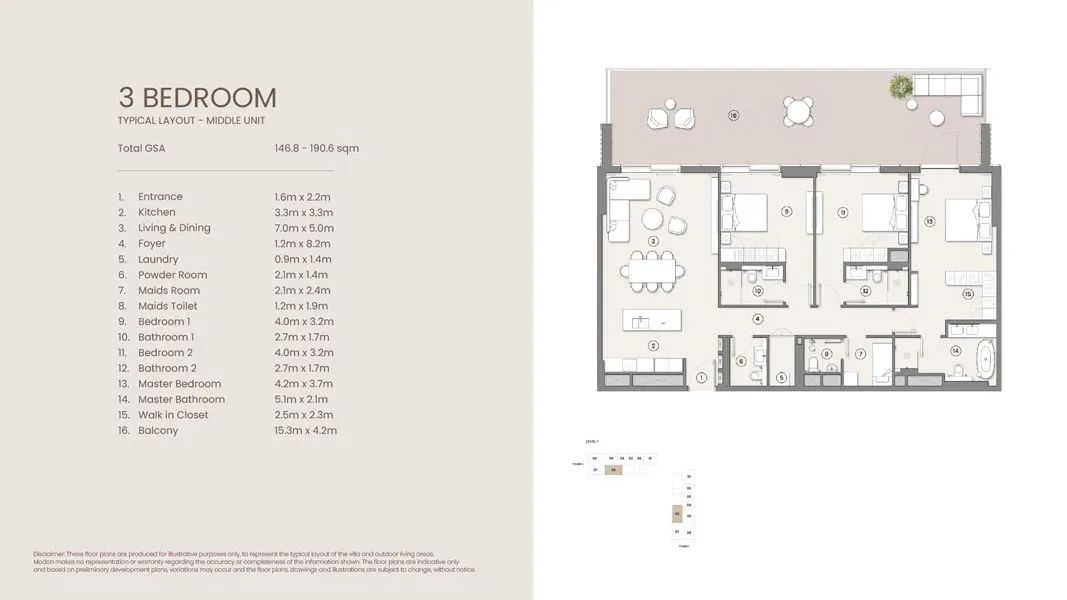 - 3 Bedroom Size: 146.8 - 190.6 Sq. M