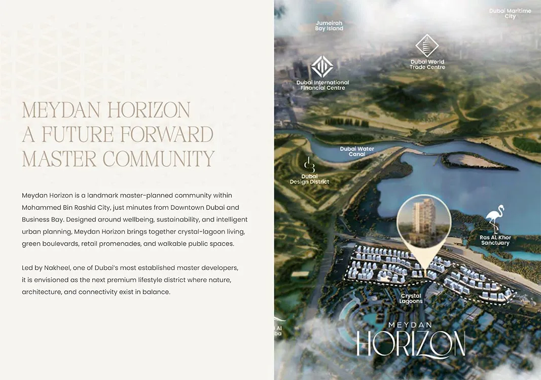 Set within Meydan Horizon, The Caden by Prescott Developments redefines modern living through smart architecture and elegant design. Surrounded by lagoon views and landscaped streets, this premium address blends urban convenience with peaceful living — ideal for families and investors seeking balance, connectivity, and style in Dubai.