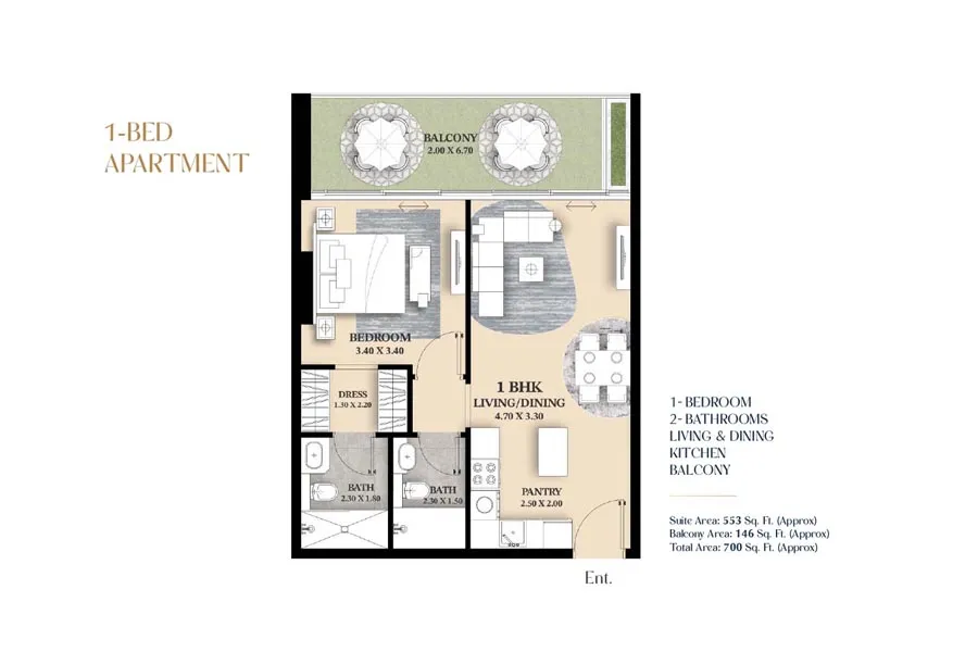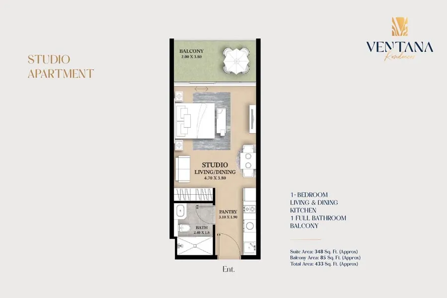 The project offers studio and 1-bedroom apartments with sizes ranging from approximately 433 to 808 sq. ft., matching common buyer searches for compact yet efficient homes. These layouts are designed to maximize usable living space, making them suitable for working professionals, couples, and small families seeking functional floor plans that are easy to maintain and rent.